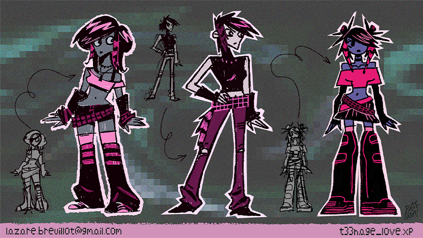 planches de recherches chara design, couleurs, et model sheet
