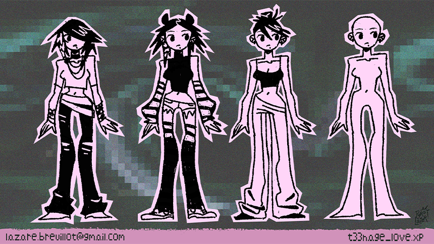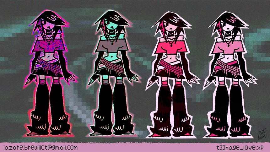 Aloysia is a shy and emo teenage girl from the 2000s, getting prepared for her date with her crush Cindy, while listening to « DIS MOI PK ?! » by Sheng on her computer.